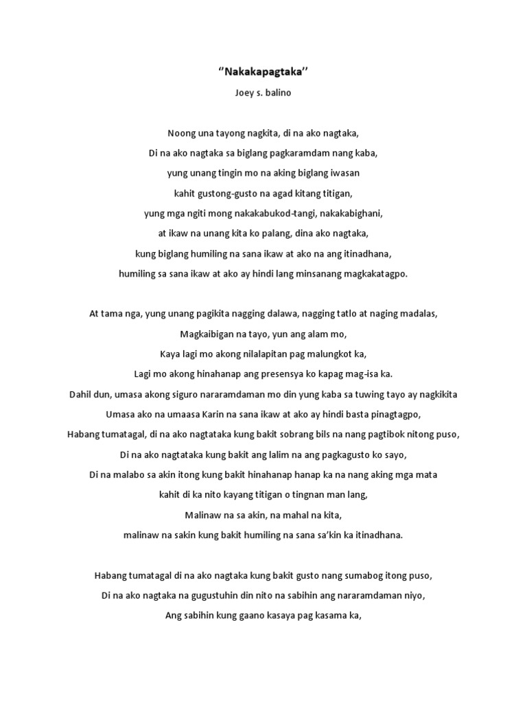 Hindi ako nag bago Kunwari Kunwaring masaya Wala namang dahilan Para mang-iwan ka Alam moba Kalahati ng buhay koy sayo Pinagsamahan Binawi na ng langit at lupa Mahal naman kita Mahal mo ba ako. Contextual translation of hindi kaba nagtataka into English. English US Español Português Brasil Français France.