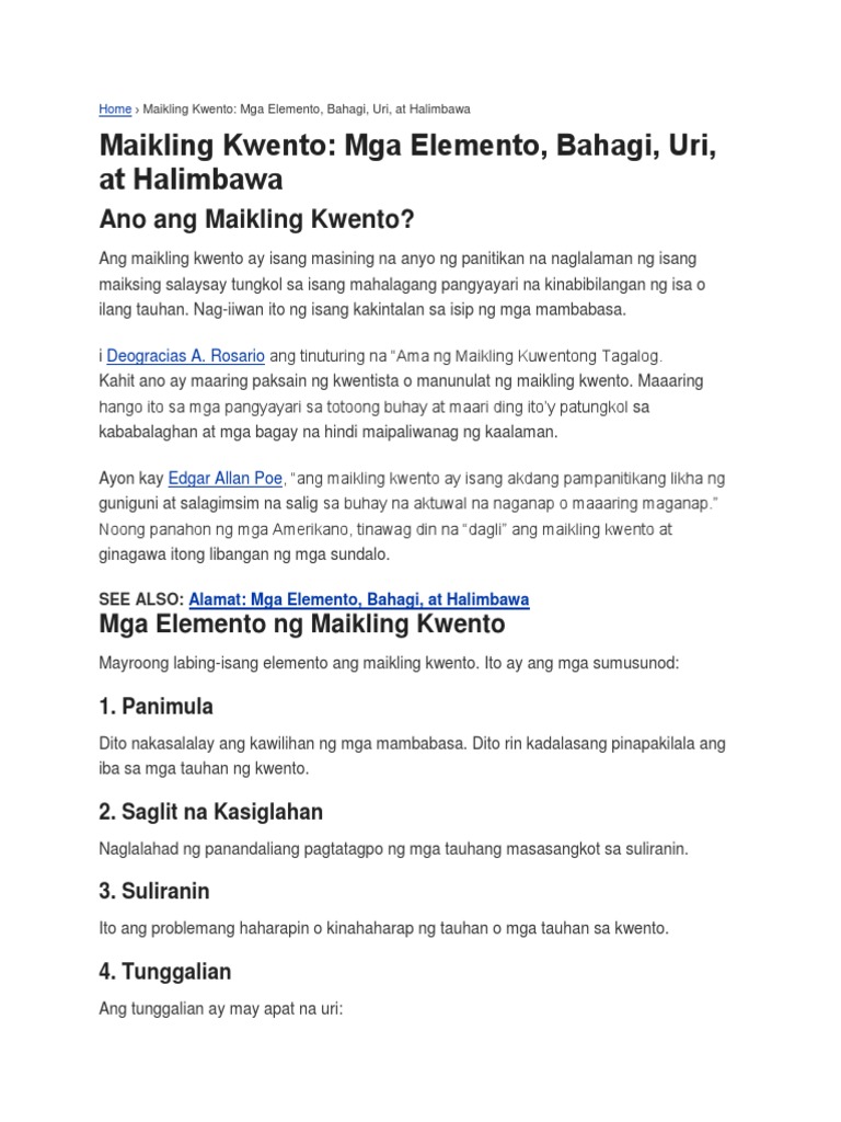 Mga Uri ng Maikling Kuwento. Just click the link below the picture to start your download. Maikling Kuwento isang anyo.